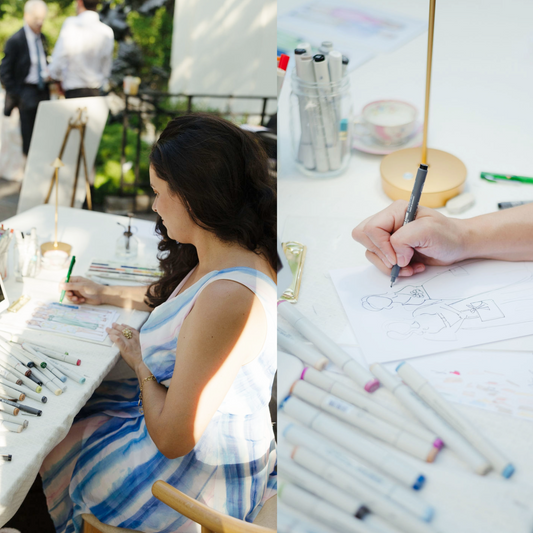 Make your special event unforgettable with Natalie Russo's live guest portraits and custom paintings. Each portrait is a personalized keepsake, created in just minutes, providing guests with a unique memento. Whether it's through vibrant pen and ink drawings or stunning custom paintings, Natalie brings your event to life with her artistic talent and creativity.