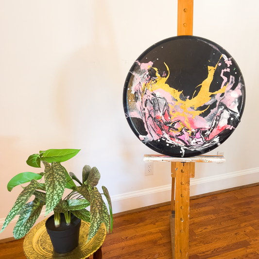 Pink and Gold Leaf Circle Painting