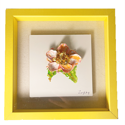 Beautiful handmade flower created by Natalie Zoghby. This flower is hand-painted using impasto paint, eggshells, and gold leaf! This truly one of a kind flower will last a lifetime.